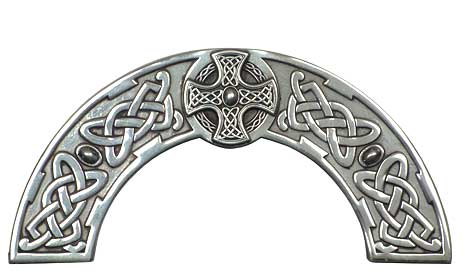 Grey dress sporran with Celtic cross cantle (Pewter top) The sporran is made with lorica and faux fur and is availble with either crossed or straight tassels.