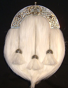 Dress sporrans > Celtic cross crossed/straight faux fur - white - Vegetarian Sporrans - Vegan animal free leather sporrans and belts