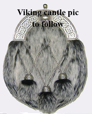 Grey dress sporran with a viking cantle (Pewter top) The sporran is made with lorica and faux fur and is availble with either crossed or straight tassels.