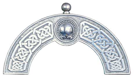 Grey dress sporran with a celtic torque cantle (Pewter top) The sporran is made with lorica and faux fur and is availble with either crossed or straight tassels.